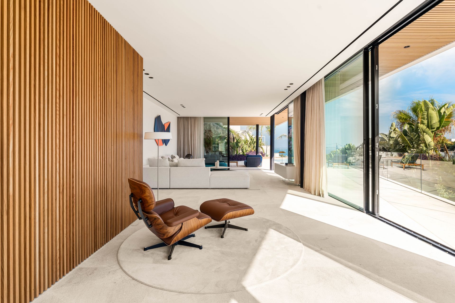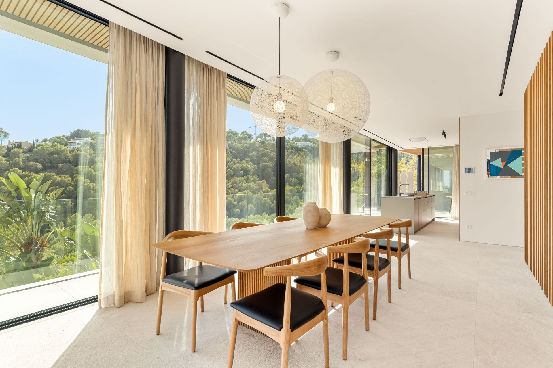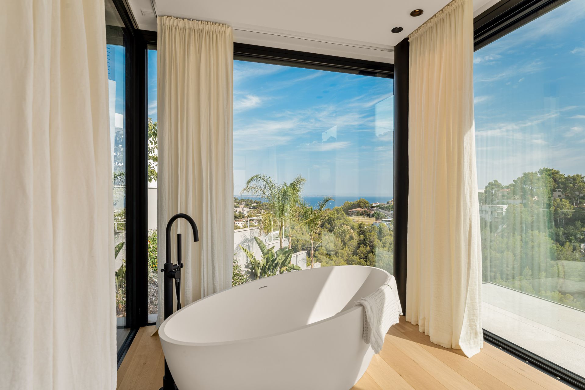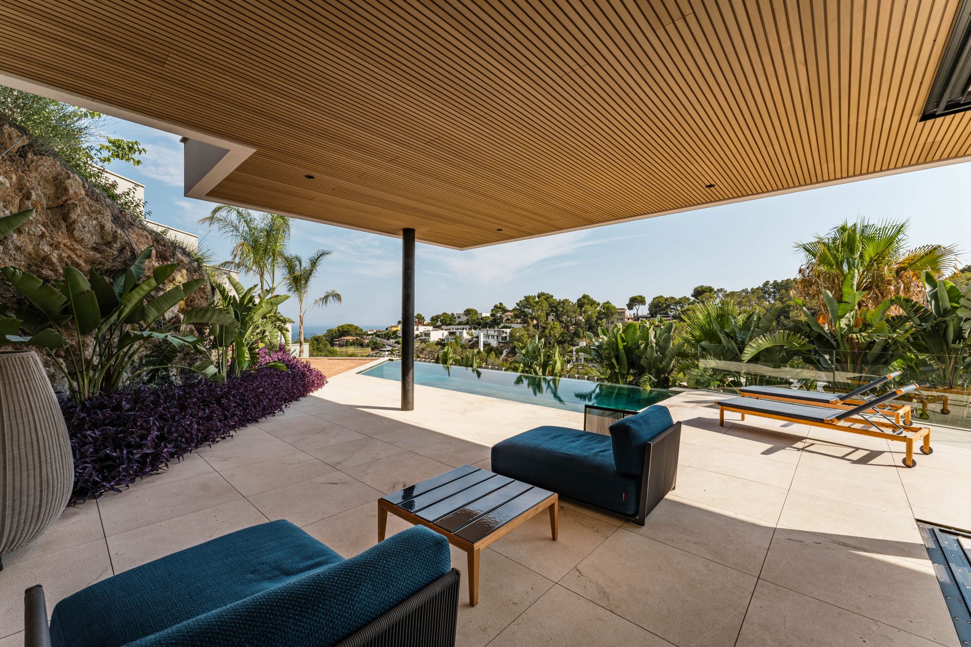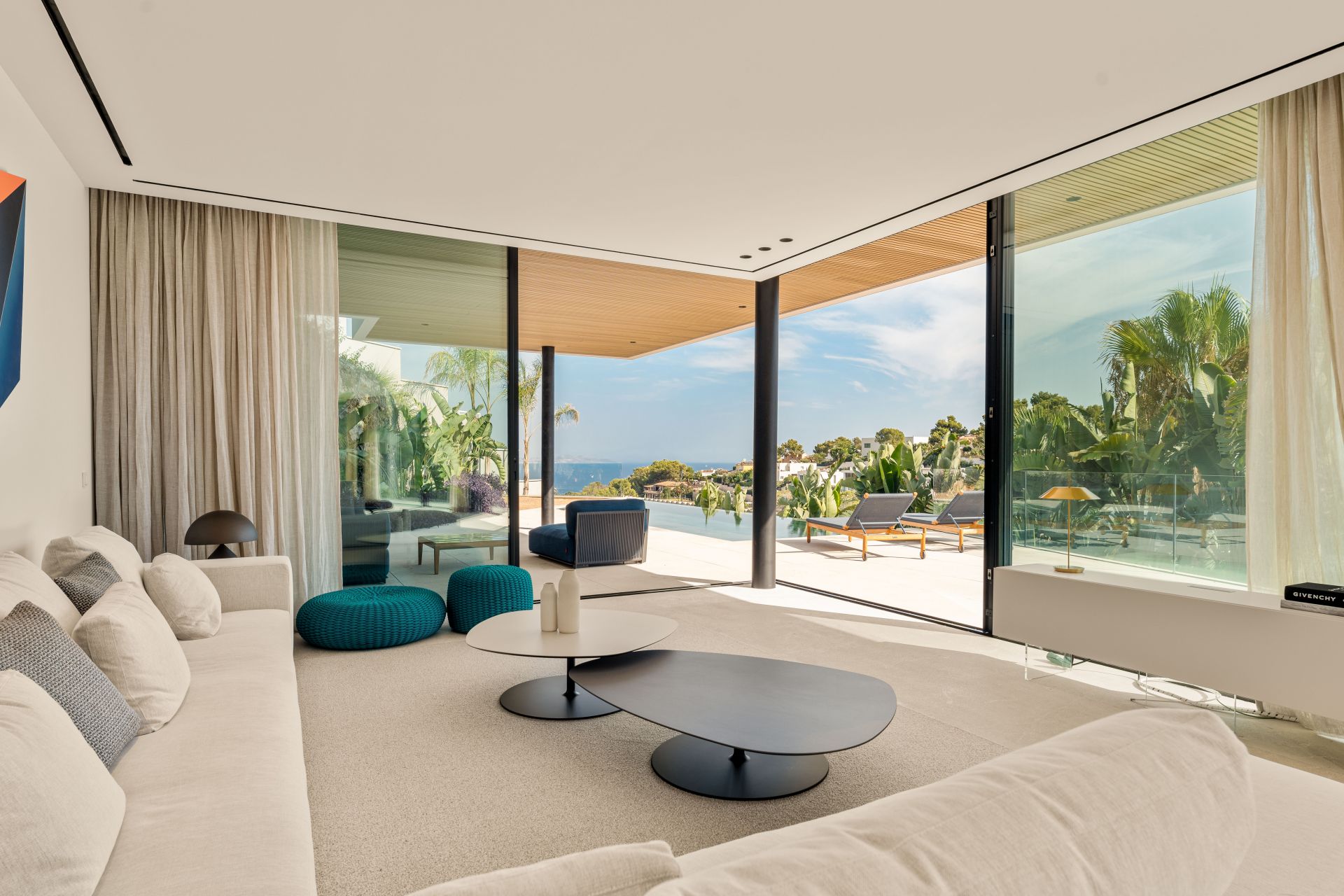 Attention to detail defines every aspect of the property. Designer furnishings and artisanal finishes complement natural stone and wood flooring, while electric blinds, underfloor heating, and double-glazed windows add modern comfort. Additional features include a three-car garage, a gym, sauna, landscaped gardens with an automatic irrigation system, and multiple terraces to enjoy the views from every level.