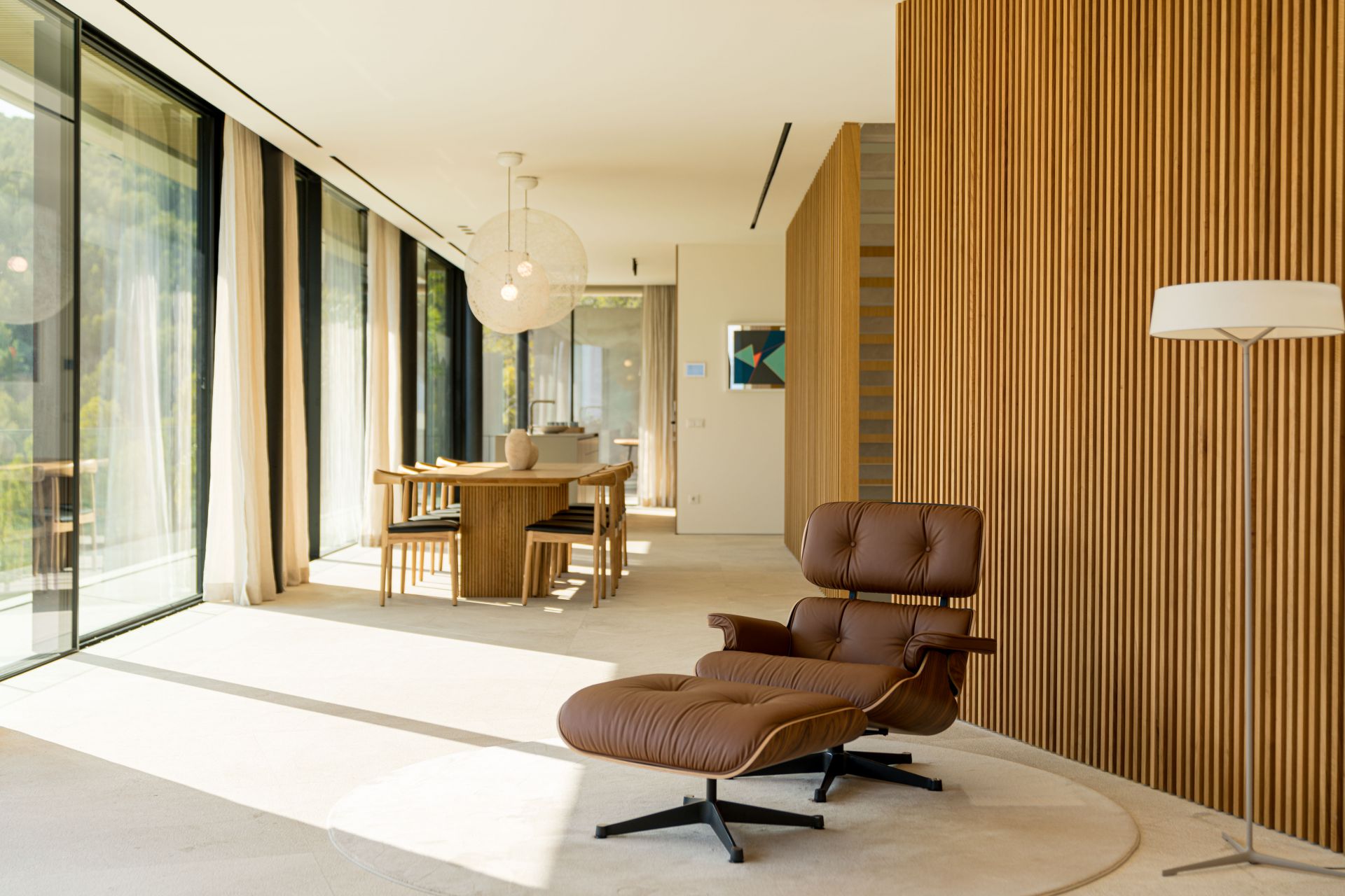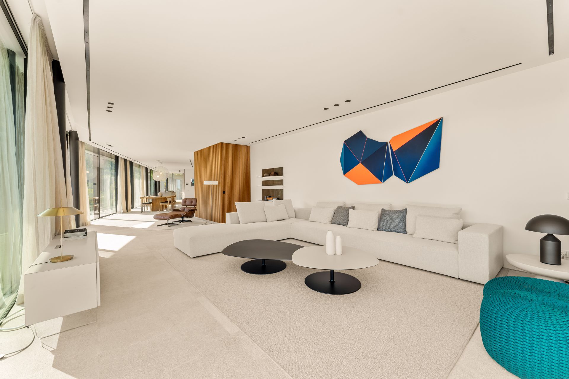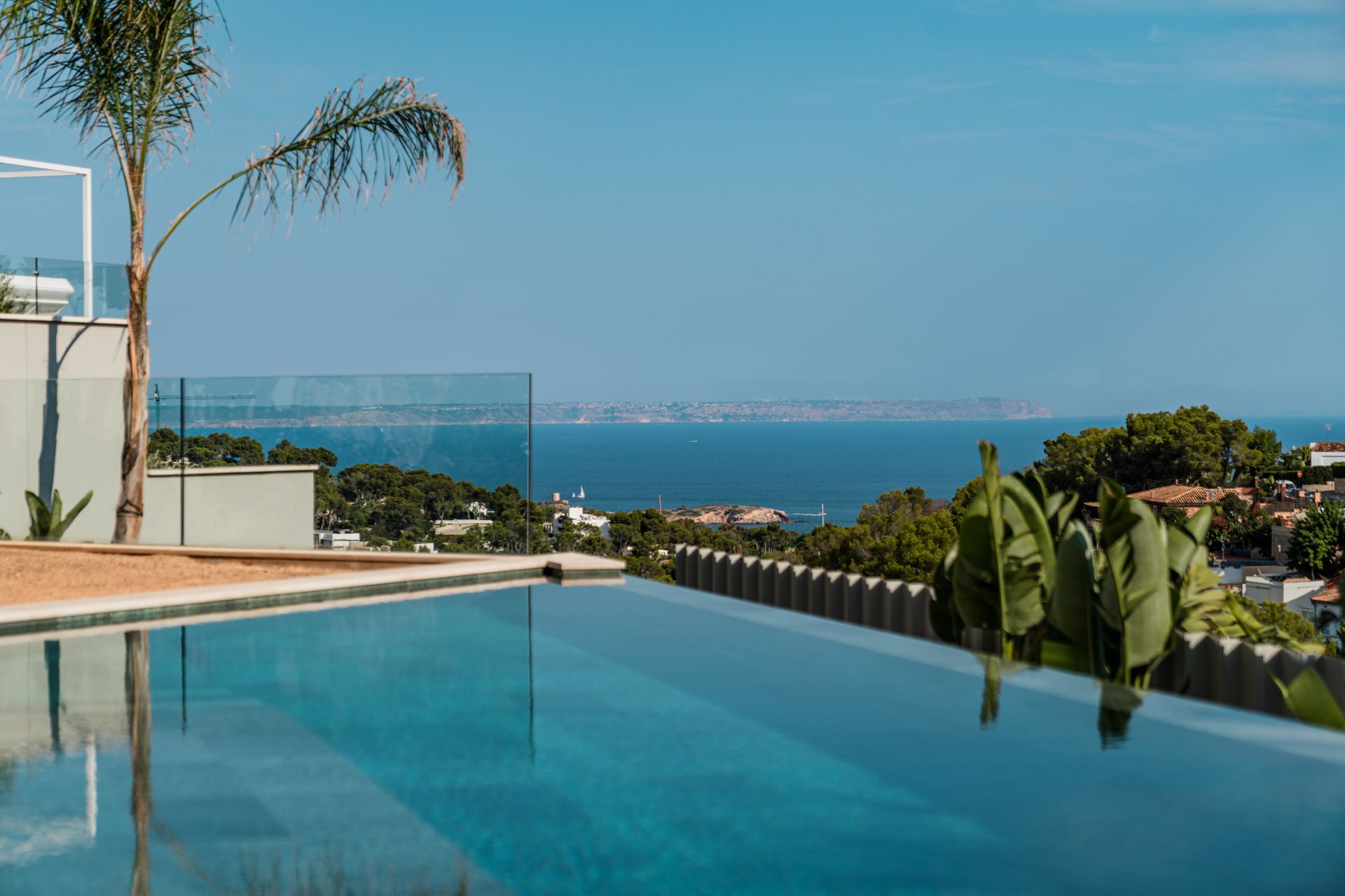 The design of Villa Zafiro balances sophistication and practicality. The ground floor is centered around a spacious open-plan living and dining area with direct access to a covered terrace and an infinity saltwater pool, creating seamless indoor-outdoor living. The kitchen is fitted with high-end Miele appliances and natural stone finishes, while expansive windows frame spectacular views.
